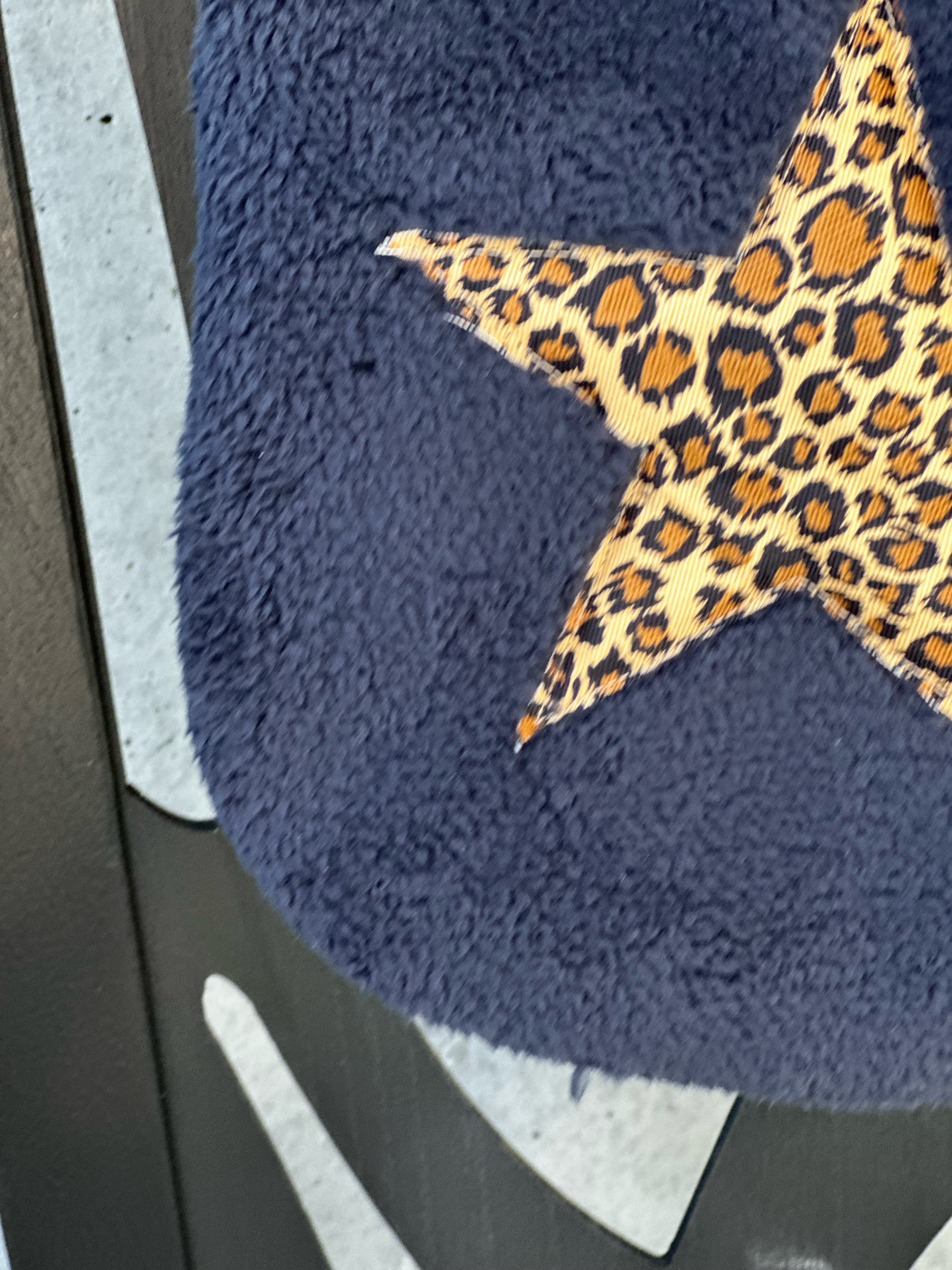 もこもこふわふわで肌触り抜群です。背中にヒョウ柄の星でインパクトもあり!